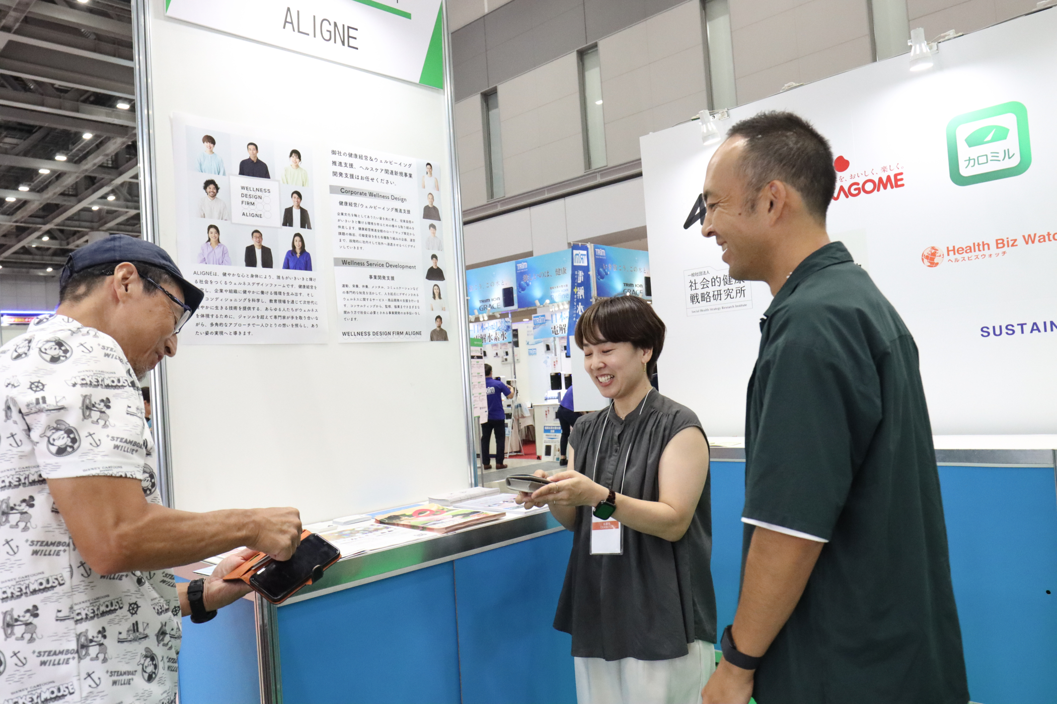 今回は特別企画「ウェルビーイング ビューティー」ゾーンにブース出展を行い、企業の新規事業担当者及び健康経営担当者やウェルビーイングに関心のある様々な方々にお立ち寄り頂き、弊社サービスにも高い関心を寄せて頂くことが出来ました。